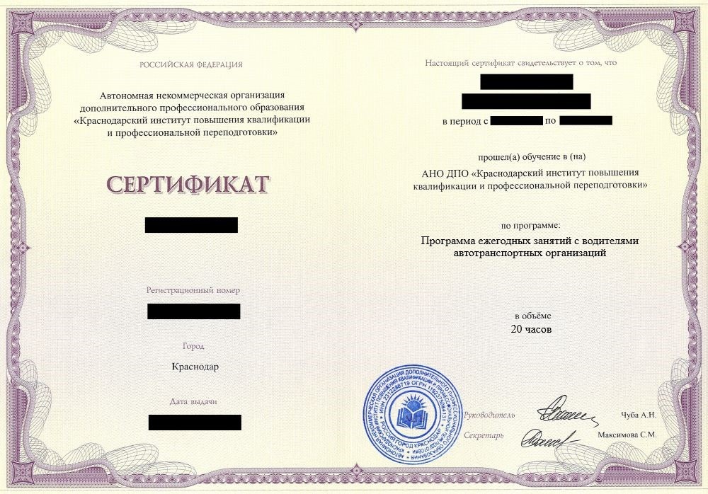 | Документ, выдаваемый после окончания обучения |