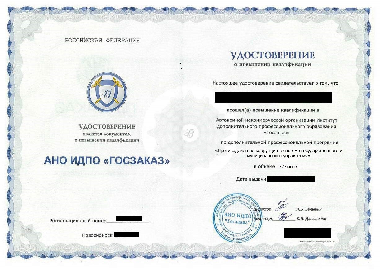 • Удостоверение о повышении квалификации установленного государством образца